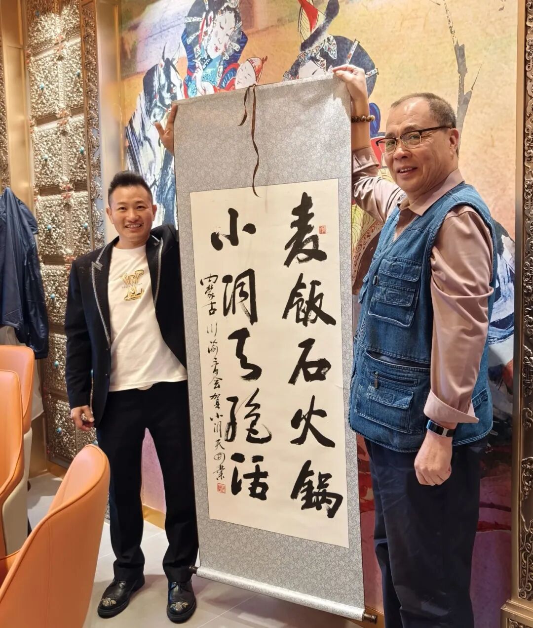 党支部书记刘贵成为开业仪式进行剪彩,商会高级顾问兼秘书长陶建虽未亲临,但亲自题字一幅相送,代表商会祝贺小洞天开业大吉。