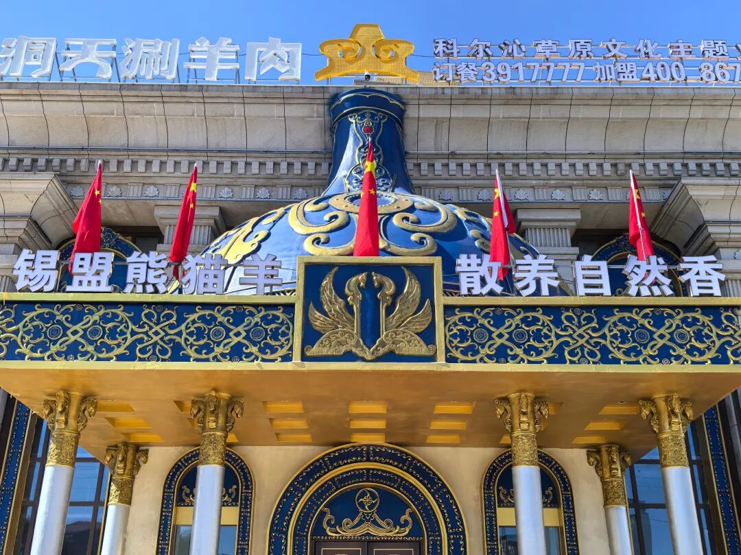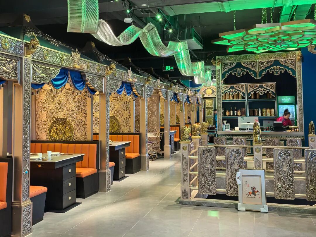 呼和浩特市小洞天旗舰店以科尔沁大妃文化为主题,采用蒙元宫廷风格装饰,步入店内,那富丽堂皇的蒙元宫廷氛围,让人仿佛置身于昔日的皇家盛宴之中。在这样的环境中品尝由苏尼特熊猫羊带来的绝妙风味,更像是一次穿越时空的美食之旅。